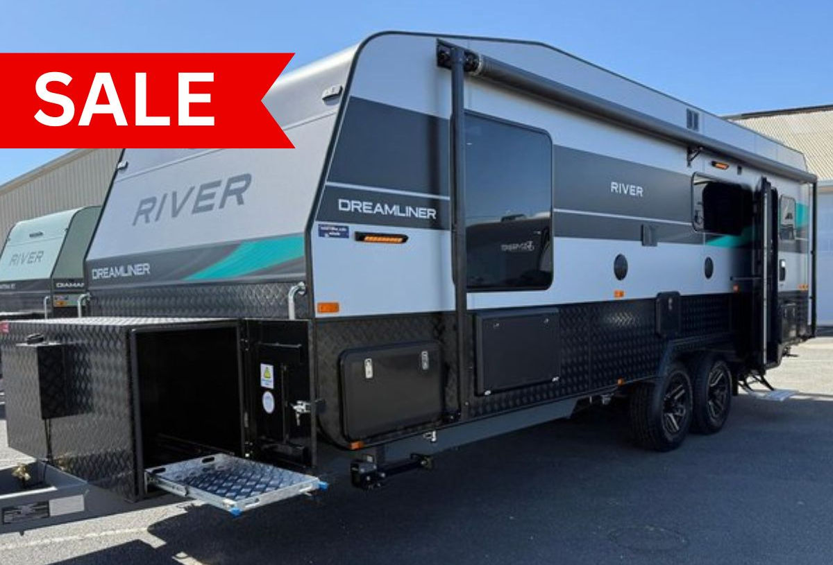 River Dreamliner 23ft Off-Road, Large Rear Club, Queen Bed, Full Centre Ensuite, Coil independent Suspension, 1x 150ah Lithium Batteries, 400w Solar, Diesel Heater, 3x Large Hatches, Queen Bed, Sleeps up to 4